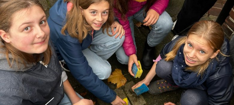 Снабдени с кофи, гъби и полиращи препарати, учениците се заеха с почистването на Stolpersteine. Имението, което е включено в списъка на ЮНЕСКО, е било център на политическа съпротива по време на националсоциалистическата епоха и сега е дом на седем Stolpersteine. Учениците имаха възможност да участват и с помощта на приложение, като оставят дигитална свещ в бившите домове на жителите на Гронау.