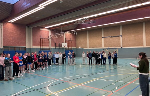 Η σχολική ομάδα των κοριτσιών γιορτάζει τον τίτλο του περιφερειακού πρωταθλήματος στην αίθουσά της