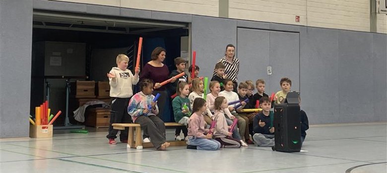 This Monday we had the following program items: After words of welcome from Ms. Borninkhof, 3b started with a piece of music accompanied by boomwhackers. The class representatives from our classes were then introduced. The music continued with the children of the first year singing two songs. As always, the monthly meeting ended with cheerful closing words and the joint school song. It was great that so many parents were there again and cheered and sang along with the happy children.