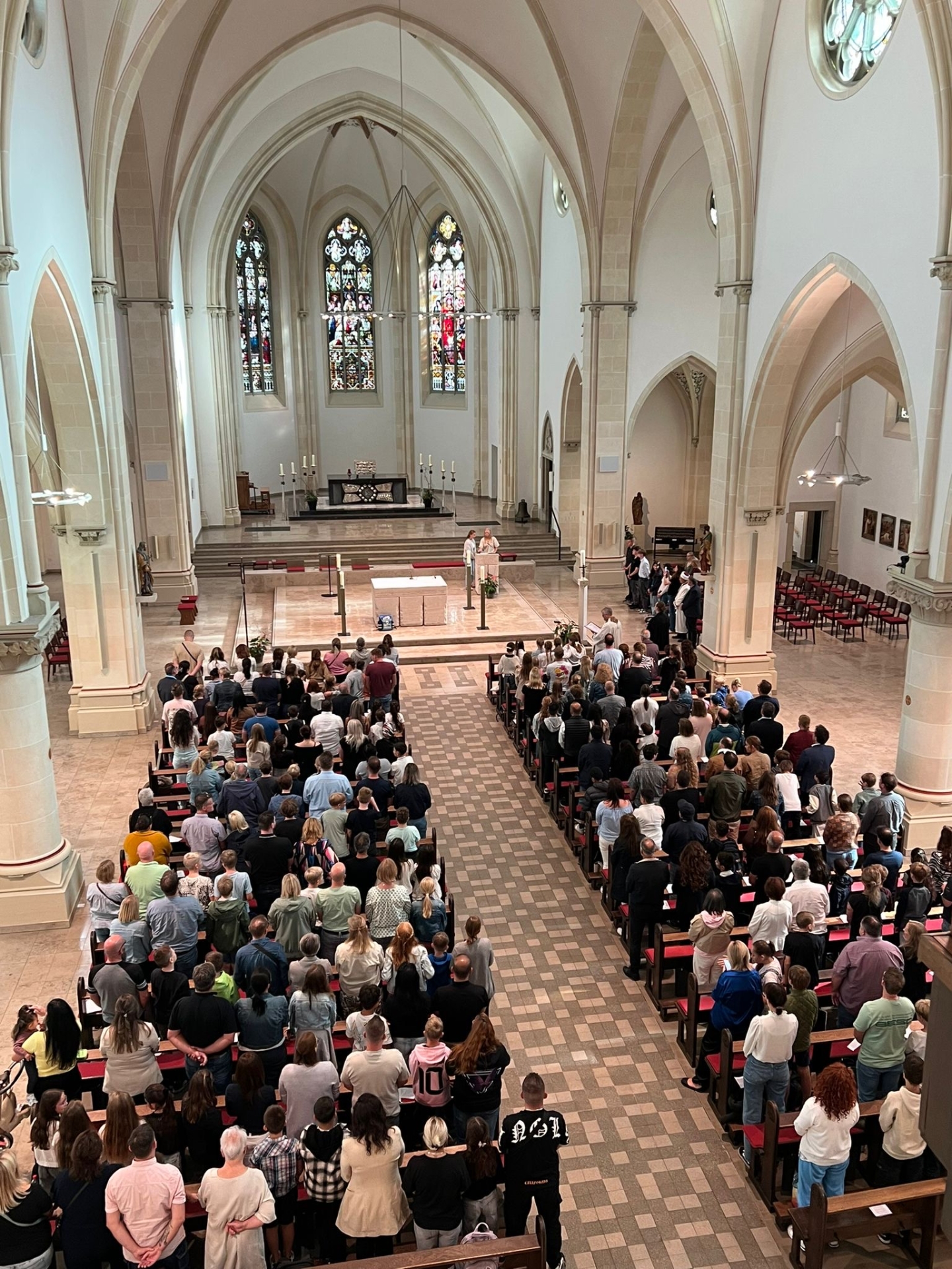 Le 7.8.23, les nouveaux élèves de 5e année ont fait leur rentrée au WvSG. Après une célébration œcuménique solennelle et un accueil dans l'Aula, les enfants des classes 5a-d ont entamé un programme de trois jours pour faire connaissance avec leurs nouveaux professeurs de classe.