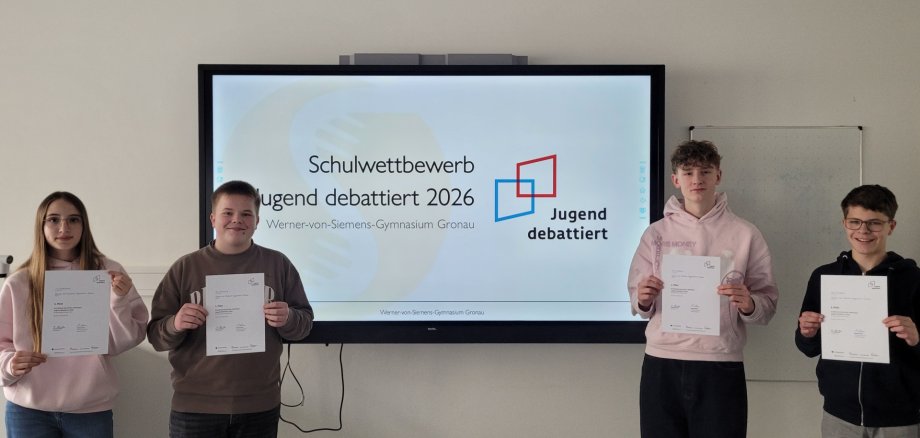 Maximilian Fortkamp a Noah Feldhues budú našu školu reprezentovať na regionálnej súťaži 18. februára, ktorá sa bude konať aj na našej škole a kde budú medzi sebou súťažiť najlepší debatéri z okolitých škôl. Obom držíme palce na regionálnej súťaži!" (Hse)