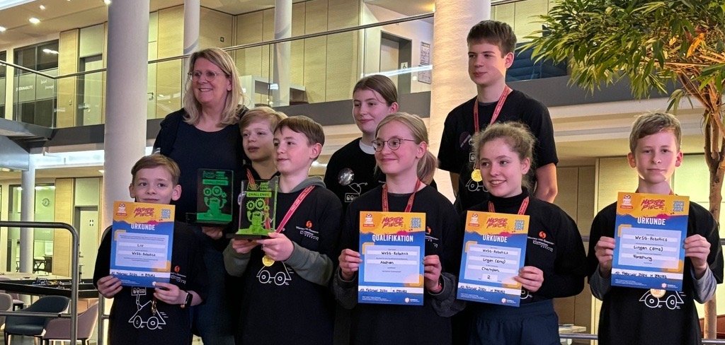 Mlada ekipa robotike WvSG z gimnazije Werner-von-Siemens-Gymnasium, ki jo vodita Heike Demming in trenerka Liv Günner (EF), je bila letos ponovno uspešna na tekmovanju First Lego League v Lingenu.